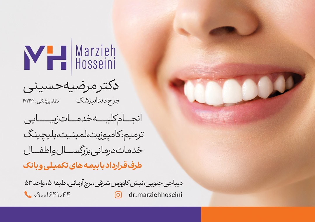 دکتر مرضیه حسینی، فارغالتحصیل دانشکده علوم پزشکی شیراز (سال ۱۳۹۸)، با بیش از ۶ سال تجربه در زمینه درمانهای زیبایی و ترمیمی، خدمات جامع دندانپزشکی را در فضایی مدرن و آرام ارائه میدهد. مطب ایشان در دیباجی جنوبی، نبش کاووس شرقی، ساختمان آرمانی، طبقه پنجم واقع شده است.