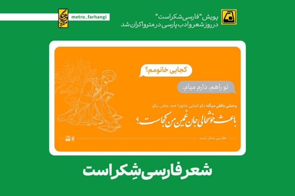 پویش “فارسی شکر است” یا #به_جاش_بگو در روز شعر و ادب پارسی در مترو اکران شد